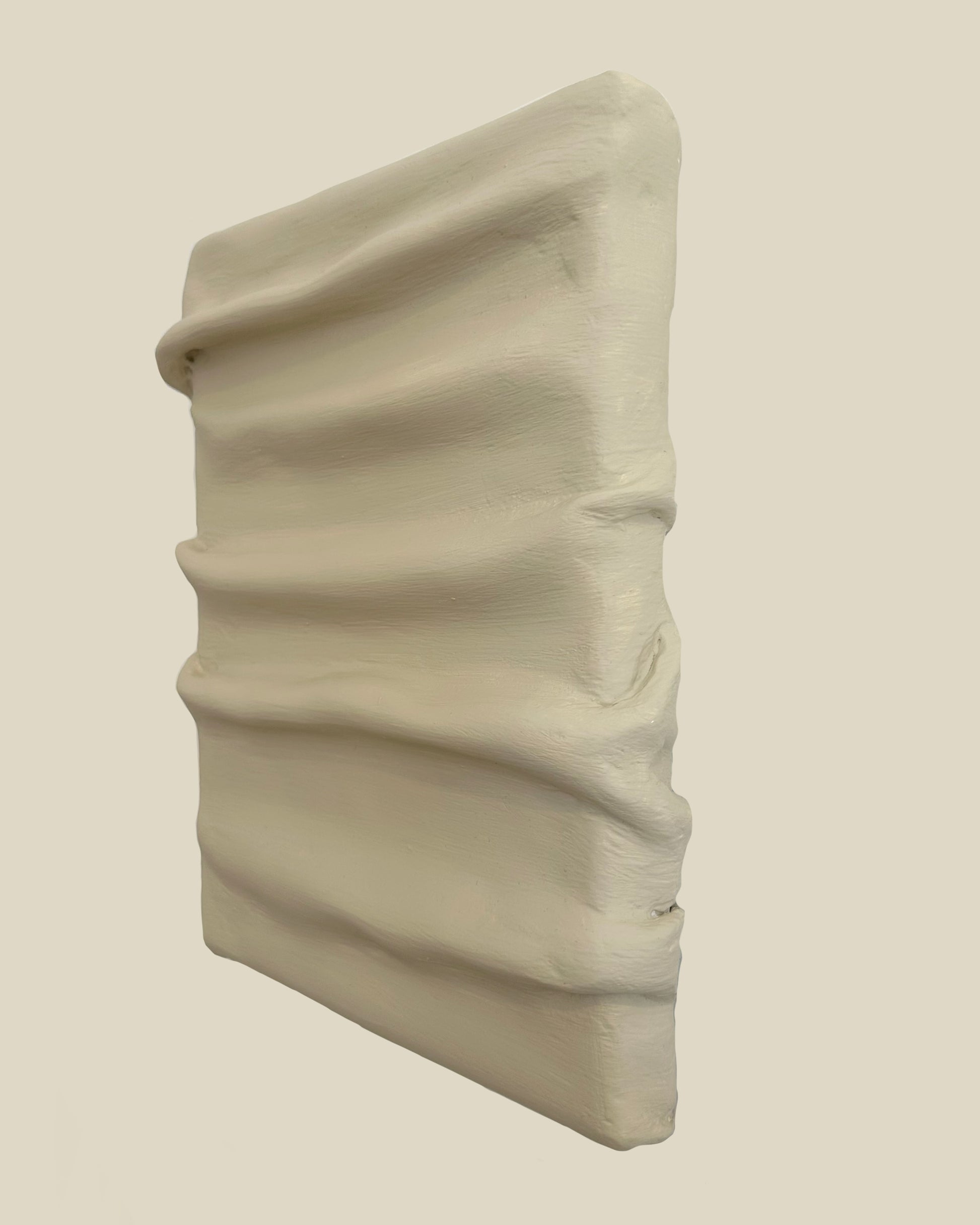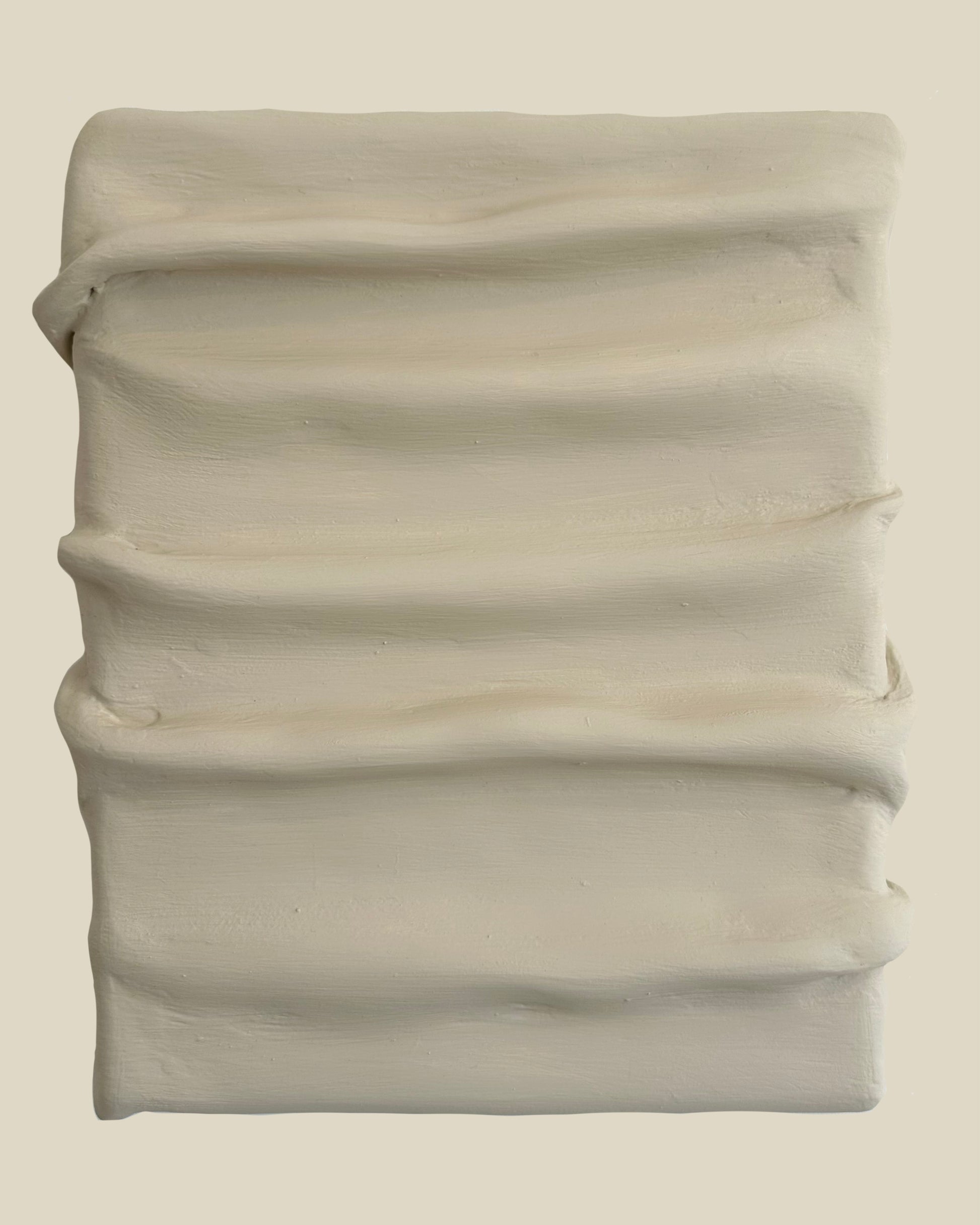 ABOUT | "Cascade" by Vil Vilano explores the use of clay on canvas, reimagining the layers found in nature. Through the raw imperfections of the clay and the flowing layers of varying sizes, this piece evokes an organic and dynamic aesthetic.