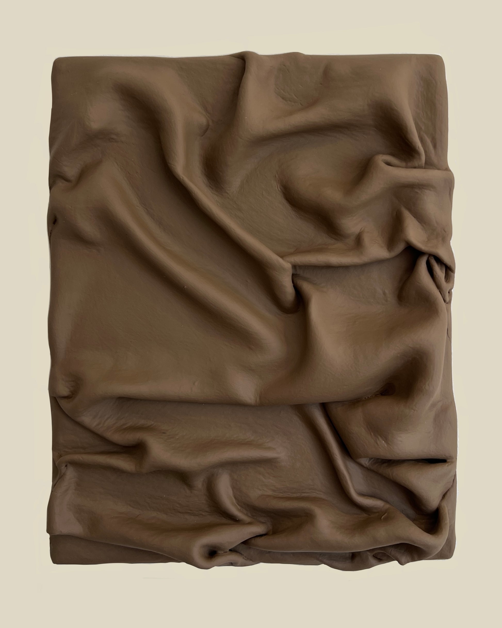 ABOUT | "Cascade" by Vil Vilano explores the use of clay on canvas, reimagining the layers found in nature. Through the raw imperfections of the clay and the flowing layers of varying sizes, this piece evokes an organic and dynamic aesthetic.